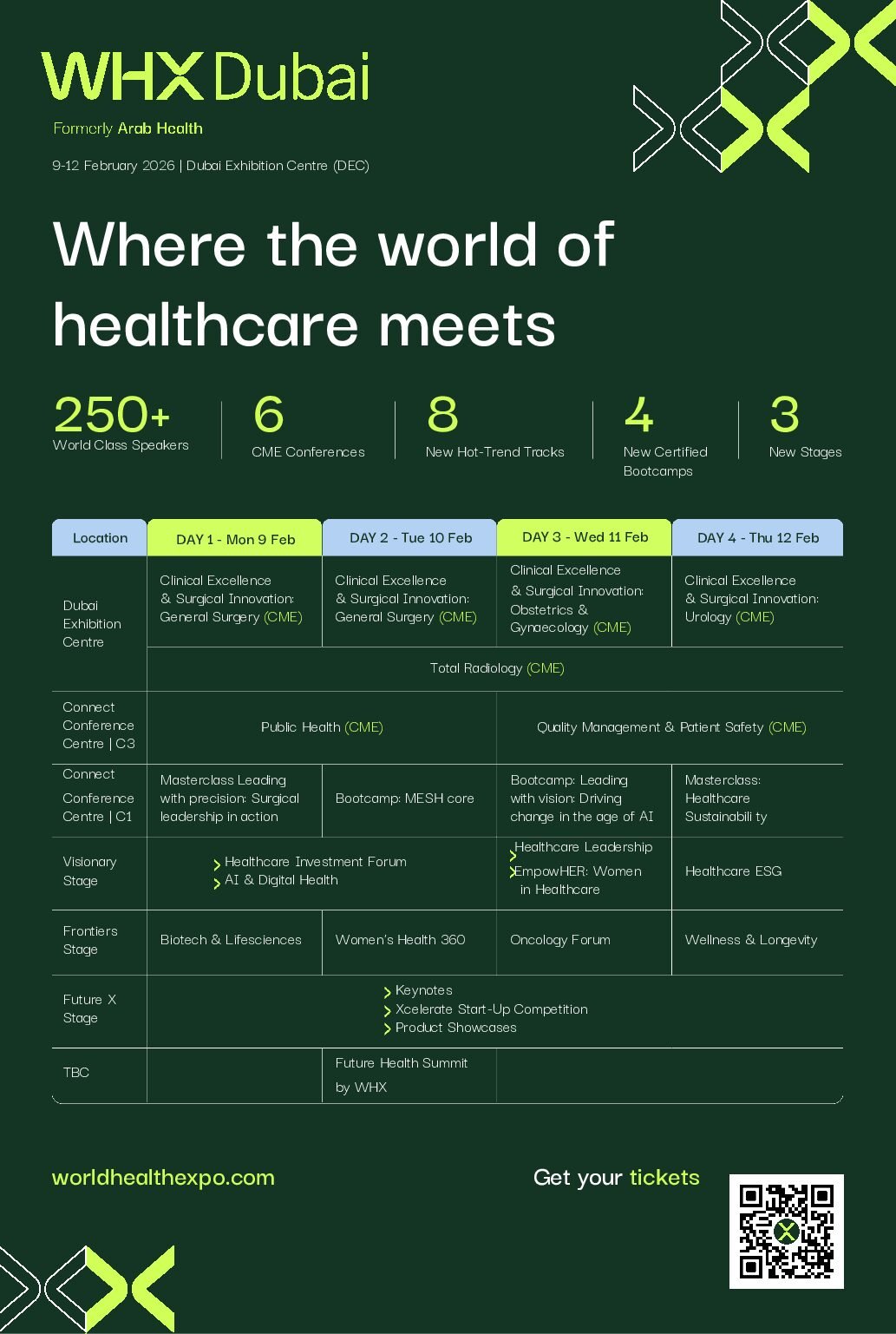We are pleased to share this upcoming global event taking place from 9–12 February 2026 at the Dubai Exhibition Centre (DEC) — the World Health Expo, a major gathering point for healthcare professionals, innovators, and industry leaders.